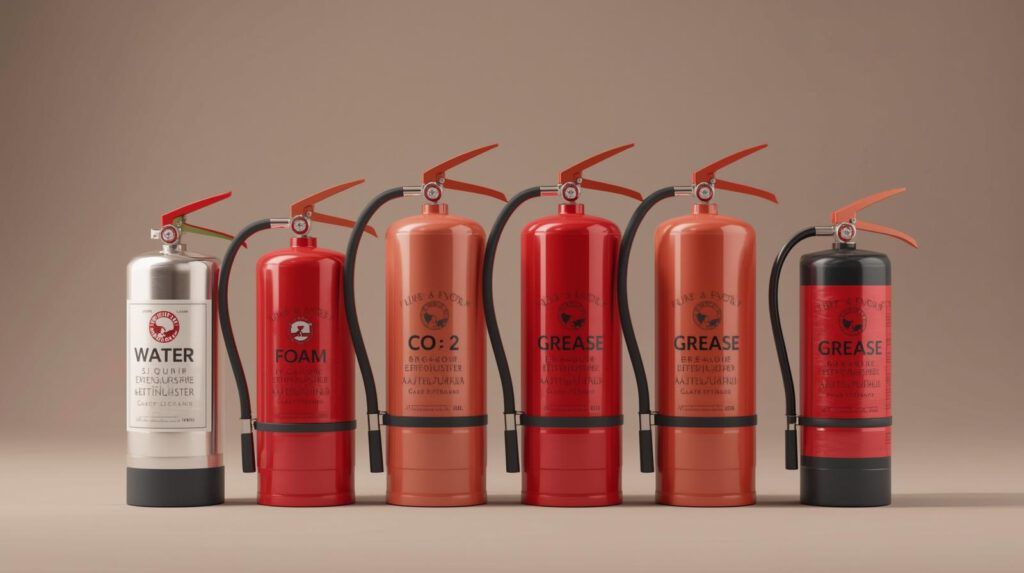 Feuerlöscher im Überblick: Typen, Löschprinzipien und Unterschiede zwischen Wasser-, Schaum-, Pulver-, CO₂- und Fettbrandlöschern.
