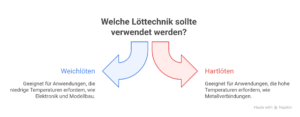 Das Lötverfahren lässt sich in zwei Hauptgruppen unterteilen: Weichlöten und Hartlöten. Weichlöten erfolgt bei Temperaturen unter 450 Grad Celsius und findet vor allem in der Elektronik, Elektrotechnik und im Modellbau Anwendung. Hartlöten dagegen wird bei Temperaturen oberhalb dieser Grenze eingesetzt, beispielsweise im Rohrleitungsbau oder bei Konstruktionen, die hohe Festigkeiten erfordern.